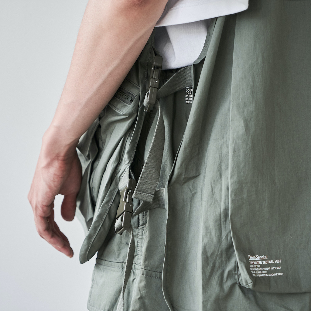 一見するとシンプルなルックスでありながらサイドシームにFreshServiceらしい大容量のポケットを隠し持つ。