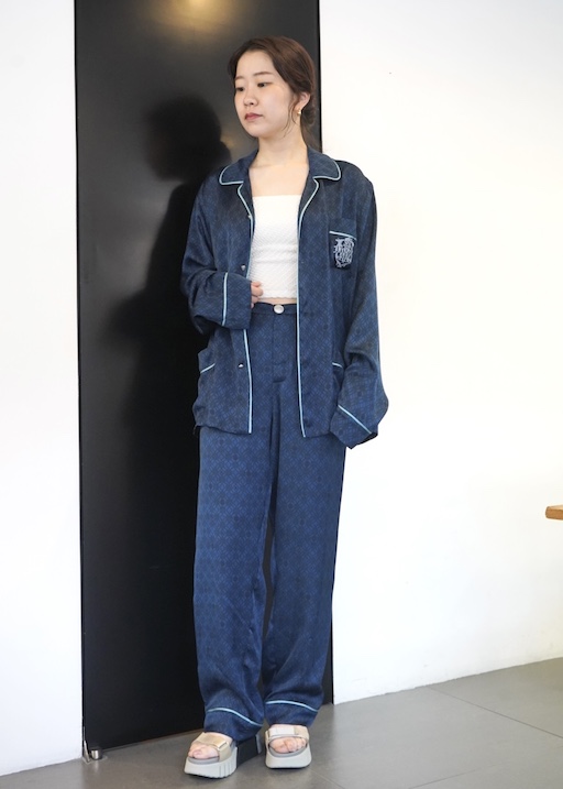 パジャマ風のルーズなセットアップは