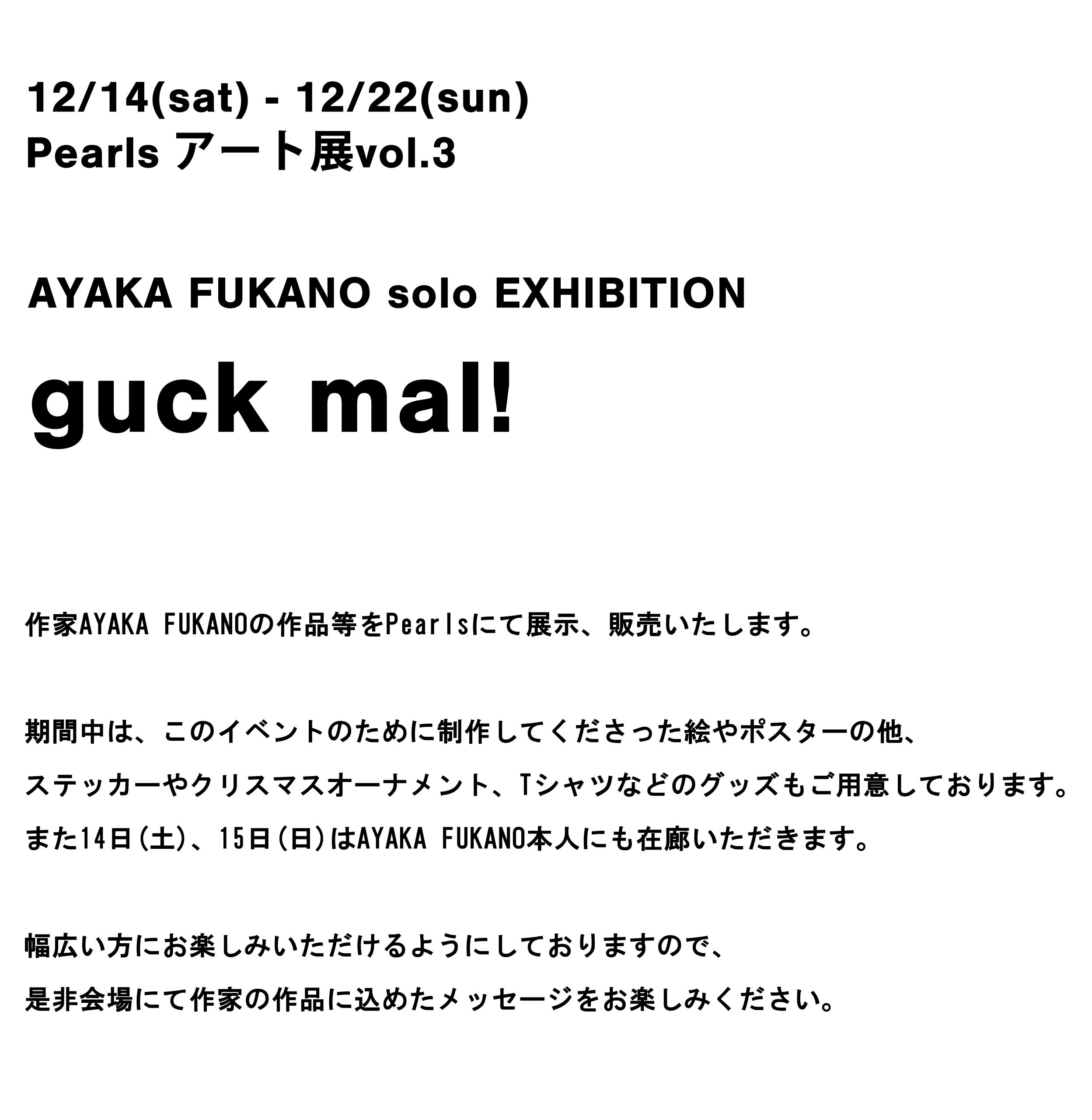 - AYAKA FUKANOのアート展『guck mal!』をPearlsにて開催
