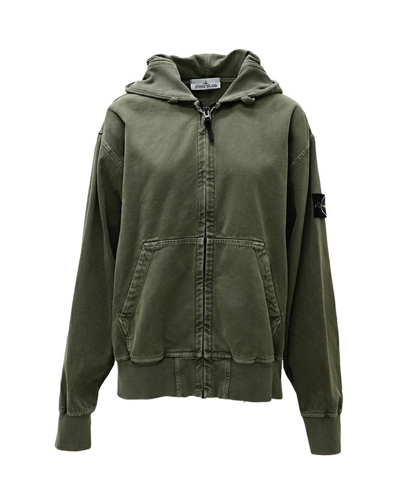 STONE ISLANDのジップフーディーは機能性と無骨さを備えた一枚。カーキの色味がミリタリーのムードを漂わせ、秋のワードローブに自然となじみます。立体的なフードやしかりとしたジップ使いは実用性が高く、羽織るだけでも存在感を演出。シンプルながらも確かな質感を備えたフーディーはカジュアルからシティスタイルまで幅広く対応できるアイテムです。