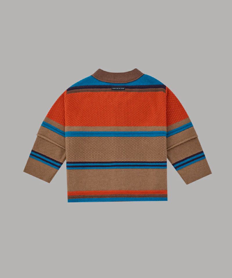 ベースボールシャツの形をモチーフにしたニットカーディガン。