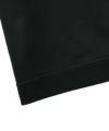 フロントにボディ同色の黒刺繍。袖口と裾にリブを配置。ブラックタグにスタンプ。