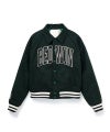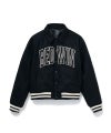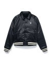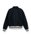 BEDWIN定番アイテムの一つアワードジャケットを今季はさらに着丈を短くすることで90年代のストリートの雰囲気を纏わせ、リバーシブル仕様に昇華。中肉厚なウールナイロンのメルトンを表に使用し、胸に大きくブランドロゴをフェルトワッペンで表現。左右の袖にはワンポイントの刺繍を配置。裏側は若干ストレッチ性のあるサテン生地を使用し、身頃と袖を配色にしている。左胸にワンポイントの刺繍を配置。