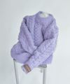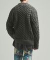 ブランドとしては珍しいオーバーサイズのクルーネックニット。フィッシャーマンニットの温かみのある雰囲気は残しつつ、ブランドらしいアプローチで都会的なアイテムにアップデート。糸の状態で起毛した、膨らみのある太番手ポリエステル糸を使用し、発色が良く、軽い着心地が特徴。形状保持力に優れた、耐久性のある素材。