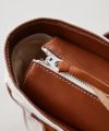 9種類のワックスとオイルを使用したハイブリッド鞣しの美しい仔牛皮革とタテヨコの糸色を打ち替えて織り上げたキャンバス生地のコントラストが印象的です。