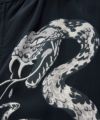 牙から毒液を垂らしながら暴れまわる3匹のガラガラヘビで構成されたデザインは、絶妙なバランスでレイアウトされ、モチーフの迫力はさらに倍増させている。