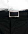 ベルト帯の中央を盛り、縁にステッチを飾るフェザー仕立て。