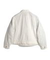 ふと見つけたヴィンテージのGジャン。よく見てみると、大手ブランドのデザインを踏襲しつつ、縫製の仕様やクオリティが量産されたものとは思えない、ある種とても不恰好な仕上がりで異彩を放っていました。どこかのストアブランドなのか、それとも物好きによる手作りなのか。どういった経緯でつくられたものなのかまったく分からず、ブランド名や生産背景も謎のまま。着てみると、やっぱりなんだか鈍臭い。でも、その佇まいに火をつけられ、このムードを残したまま、どれだけかっこよくできるかということを一生懸命考えました。生地はデニムではなく、コットンとポリエステルを使用した薄手のツイルにアレンジ。軽さを出して、シャツのようにサラッと羽織れるアイテムにしました。色もクリーンなホワイトとベージュをセレクトして、ファッションアイテムとしての輝きを加えています。寒くなってきたらバルカマンコートの中に着るのも良さそうです。