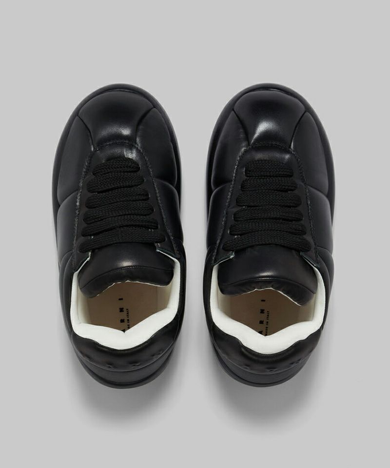 オーバーサイズのパフィシルエット、ステッチ入りパネル、ヒールタブにマルニのレリーフレタリング。