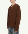 やわらかで立体的なフォルムに、ダメージ加工とランダムなほつれを加え、均整の美をあえて崩したVネックニット。