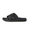 スリッポン仕様のため、脱ぎ履きがスムーズで、デイリーユースに最適。リサイクルポリエステルを使用した4 本のストラップで構成されたアッパーに、Tevaのネーム、N.HOOLYWOOD COMPILE のブラックのネームテープをそれぞれ配置。フットベットに、Tevaのブランドロゴを型押し。