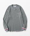 袖口の配色ラインリブがポイント。コットンの糸とコットン/エステルの混紡糸を独特のバランスで使用し、ゆっくりと丁寧に編み立てたWHIZLIMITED定番のサーマルカットソーです。洗濯にも強く、長くご愛用いただける一枚となっています。