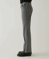 ウールサージ生地を使用したスラックスに、1950’Sのウエスタンパンツを再構成したフレアパンツは、脇線を後に傾ける事でシルエットを構成し、裾のドットボタンあきでフレアシルエットを強調される。