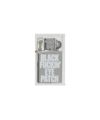 "BLACK FUCKIN’ EYE PATCH" のグラフィックをプリントしたライター。 ベースとなるのは 1952 年に創業、東京を拠点に金属と革を使った喫煙具と小物雑貨を製造している坪田パールの代表作「ハードエッジ」。