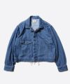 VintageのミリタリーAll In Oneをベースに上下で切り離し、各々を単体で着用できるようにアレンジしたボトムス。つなぎの下半身を 切り取ったデザインのため、極端なウエストの大きさ、深めの股上などとてもユニークなデザインに仕上がりました。オリジナルのデ ザインを踏襲し、サイドを切り替えていないためとても贅沢に生地を使用しており、着用した時のバランスが特徴的なアイテムです。 同素材のトップスと合わせた際にAll In Oneとして着用できるよう、ウエストにはドローコードを配しました。 1950~60年代にUnion Ticketでお馴染みの様々なワークブランドが加入していたUnion (Union Made )の規格で作られたSanforized(防 縮加工)仕上げがされた10ozの2/1ライトハンドワークデニムを再現したワークデニム。染色、糸使い、密度、打込などは当時のデッド ストックを分解・解析して再現した生地。織布については生産性を考え当時同様の旧式力織機ではなく敢えて革新織機で再現していま す。