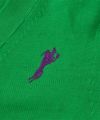 右身頃はスタンダードなシンプルなシルエット、左身頃は肩引っ張られ伸びてしまったようなイレギュラーなパターンメイキングにより、相反する要素が同居しているカーディガンになります。 裾を合わせて下からボタンを途中まで止めていくと左身頃が肩からズリ落ちてワンショルダーのような着方もでき、ボタンを全て外せばアシメトリーなデザインカーディガンに。性別に超えて自由な発想で着てもらえたら嬉しいです。