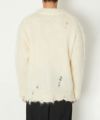ブロークンモヘアカーディガン。大きめなサイズ感に、作品をイメージしたオリジナルのステンレスのボタンを配置。