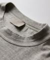 身幅や袖丈など大きめに設定したパターンを使用し、首に沿って立ち上がる衿布が特徴的なTシャツです。