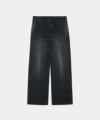 ゆとりがある腰回りで、そこから素直に落ちるストレートシルエット。共地のあて布を膝部分にたたきつけることでハリ感が増し、よりワイドなシルエットが強調されます。