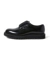アメリカの郵便配達員用のサービスシューズとして生まれ、現在にいたるまでの約30年、ジャパンメイドで生産するロングセラーモデルをベースに製作。頑丈なステッチとせり出したコバ、ロウ引きのシューレースを組み合わせ、無骨ながらクラシックな印象に。アッパーにはN.HOOLYWOOD COMPILEのネームタグと共に、USPSのタグをジャパン仕様にアレンジ。さらに、本コラボレーションのモデルナンバーを刻印。