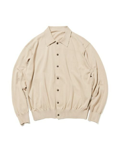 新作のポロカーディガン。イタリアの生地メーカー、セジア社の高級コットンを使用した一枚は、軽くハリのある着心地。サッと羽織ることのできるカーディガンと、上品な表情が魅力のニットポロのハイブリットアイテム。柔らかなトーンのブラック、ベージュの2色を展開。