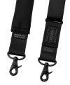 キャリングエクイップメントストラップは一般的なパーツとテープの組み合わせを独自の仕様で縫製し、ワンアクションで滑らかな調節を可能にした画期的なショルダーストラップです。テープ上にあるDカンを上下させることで簡単に長さの調整ができ、カバンを肩に掛けたり下ろしたりする際に便利な機能です。肩に当たる部分に「αGEL」を内蔵した肩パットを採用し、掛けたときに身体への負担が少ない心地良い仕様にしました。