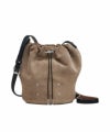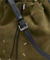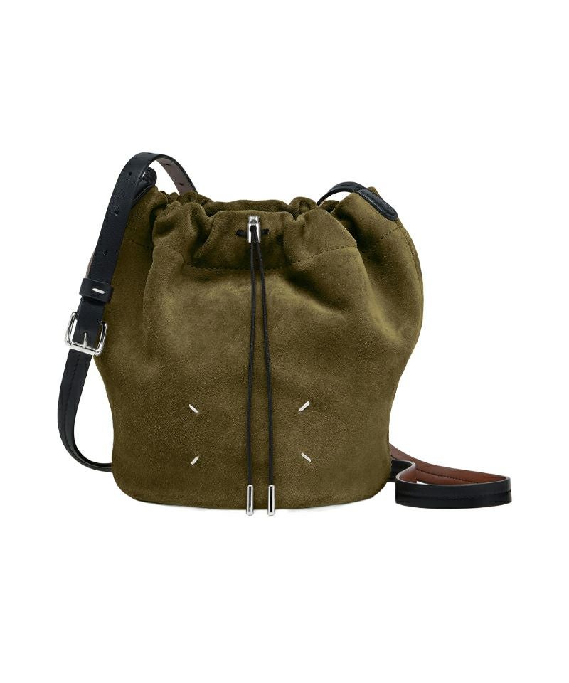 カジュアルなフォルムを洗練された表現に昇華したバケットバッグ。スエードで構築された彫刻的なシルエットが特徴で、ドローストリングクロージャーで開閉し、コントラストの効いたベルト風ショルダーストラップは調整可能。クロスボディ、ショルダーの両方で楽しめます。フロントにはメゾン マルジェラおなじみの4ステッチが入り、ラベルの代わりとして存在感を放ちます。