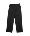 シルエットは股上が深めでワイドシルエットで、前明き部分やフロントポケットのカッティング部分にパールボタンをあしらい、ベルトループなど様々な箇所にウエスタンディテールを用いたトラウザーパンツとなっている。