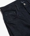 ワタリはややゆったり、裾に向かってテーパードしているシルエット。生地と同色ステッチで合わせたジーンズ。