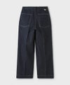 新たに製作された10.5ozのオリジナルセルビッチデニム素材を使用。シルエットは若干のテーパードをきかせたスラックスシルエット。