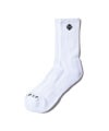 サイドのミニエンブレムロゴがコーディネートのアクセントづけに有効なレギュラーソックス。ブラック、ホワイトのスタンダードな2色展開で、部位ごとに編み立てを変更することによってフィットの快適さを向上させています。