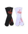 両ブランドのロゴを配したビビッドなオレンジが目を引く2パックソックス。