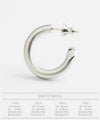 金属そのものの美しさが際立つ無垢な曲線美に、刀で切りとった様なシャープなエッジラインがアイコニックなフープピアス。
