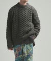 ブランドとしては珍しいオーバーサイズのクルーネックニット。フィッシャーマンニットの温かみのある雰囲気は残しつつ、ブランドらしいアプローチで都会的なアイテムにアップデート。糸の状態で起毛した、膨らみのある太番手ポリエステル糸を使用し、発色が良く、軽い着心地が特徴。形状保持力に優れた、耐久性のある素材。