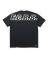アウトライン付きのF.C.R.B.ビッグロゴを背面ヨーク部分に大胆に配したクルーネックTEE。インパクトのあるバックデザインとは対照的に、フロントは胸元にエンブレムのみ施したミニマルなルックス。ボディは身幅の広いバギーシルエットを採用しています。