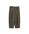 ゆとりを持たせた腰回りと膝下から細くなる立体的なシルエットのis-nessのバルーンパンツをベースに、Graphpaperを象徴するシェフパンツのウエストベルトディテールを組み合わせたデザイン。