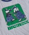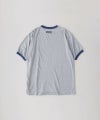 ボディはベーシックなコットン100%の天竺、トリムは80年代のムードが漂う配色のバインダー仕様でオリジナルパターンのリンガーTeeです。