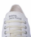 コンバース不朽の名作、ジャックパーセルとのコラボレーションモデル。内側のヒールカウンターとシュータンに、アイレット同様のシルバー色でロゴをセット。