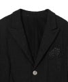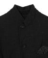 ウール・リネンかすりジャケット フロントにフラップポケットとパッチポケット 前後にビッグタグ インナーポケット コットン・シルク裏地吹き出しデザイン