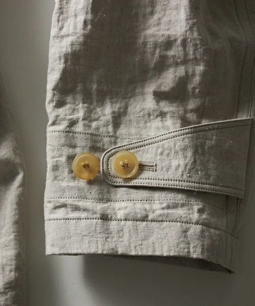 Tシャツの上から、超⾼密度で、⽬の詰まったリネン⽣地をバサっと⽻織り、⾜元サンダルで軽快に着こなすイメージです。
