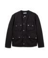 染色加工を施したコットンドリルを使用したモーターサイクルジャケットです。 ノーカラー仕様や、ゆとりをもたせたやや丈の短いシルエットが特徴です。