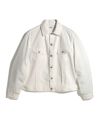 ふと見つけたヴィンテージのGジャン。よく見てみると、大手ブランドのデザインを踏襲しつつ、縫製の仕様やクオリティが量産されたものとは思えない、ある種とても不恰好な仕上がりで異彩を放っていました。どこかのストアブランドなのか、それとも物好きによる手作りなのか。どういった経緯でつくられたものなのかまったく分からず、ブランド名や生産背景も謎のまま。着てみると、やっぱりなんだか鈍臭い。でも、その佇まいに火をつけられ、このムードを残したまま、どれだけかっこよくできるかということを一生懸命考えました。生地はデニムではなく、コットンとポリエステルを使用した薄手のツイルにアレンジ。軽さを出して、シャツのようにサラッと羽織れるアイテムにしました。色もクリーンなホワイトとベージュをセレクトして、ファッションアイテムとしての輝きを加えています。寒くなってきたらバルカマンコートの中に着るのも良さそうです。