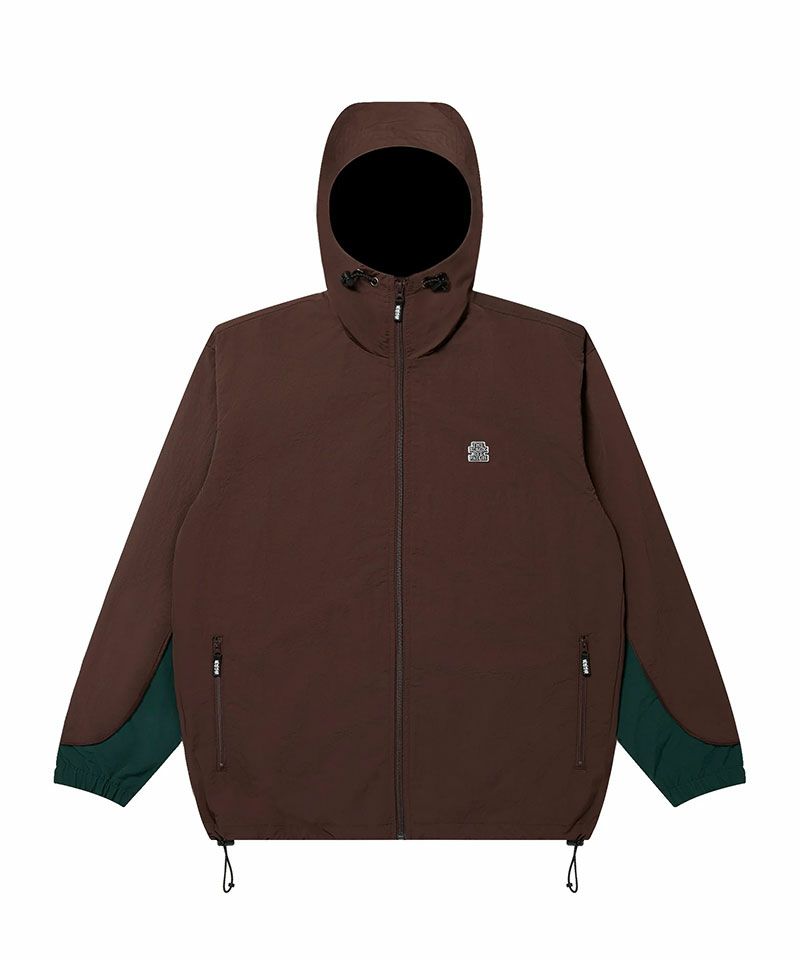 左胸に "SMALL OG LABEL" のロゴワッペンを施したマウンテンパーカー。 ファスナーには "取扱注意" のピスネームを取り付けている。 撥水加工を施したナイロン素材の生地を使用しており裏地はメッシュ素材。