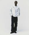 ミリタリーディテールを取り入れて作成したシェルパーカ。シンプルながらも水の侵入を防ぐよう止水ジッパーを搭載した新デザイン。ミリタリーのディテールでもある前振りの袖がデザインアクセント。アクションプリーツを加え、腕の可動域を広げられるように考えたデザイン。