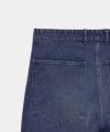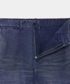 ゆとりがある腰回りで、そこから素直に落ちるストレートシルエット。共地のあて布を膝部分にたたきつけることでハリ感が増し、よりワイドなシルエットが強調されます。