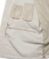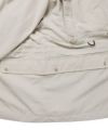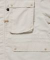ふっくらとした肌触りが特徴のタスラン糸を使うことでコットンタッチを表現し、クラシックなグログラン組織のヨコ畝とマットなルックスが特徴の60/40風素材です。 急な天候変化にも対応できる撥水加工 清涼感のあるグログラン組織の特徴を活かし、メッシュライニングを施したアウトドアジャケットです。 胸部に大きく配したフラップポケットは、両サイドのジップにより、複数の物の出し入れが可能となり、ハンドウォーマーとしての機能も果たします。 サイドまで覆うようにデザインしたポケットも特徴で、ルアーケースや、タックルボックス、ドリンクホルターとしての機能も果たします。ネックには収納可能なフードも収納されており、機能性抜群です。 どこか1990年代を感じさせる配色もこのアイテムの特徴です。内側にはブランドを代表する様々なポケットワークを施し様々なフィールドに対応できるデザインに仕上げました。 ミリタリーのディテールでもある前振りの袖がデザインアクセント、アクションプリーツを加え、袖口も調整出来るようにデザイン。釣りの際の可動域を広げ、袖口のもたつきも解消したデザインです。