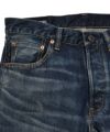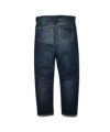 13.5ozのオリジナルインディゴセルヴィッジデニムにシルケット加工を追加する事でムラ感を抑えつつヴィンテージライクな表情に仕上げたデニムを採用。