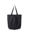 開口部のコードを絞るとスクエア型から丸みのあるシルエットに変化するトートバッグ。コンパクトに折り畳んで持ち運びが可能なパッカブル仕様。メガネ、サングラスのレンズやスマートフォンの画面クリーナーとして使えるTECH WIPER付き。
