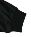 フロントにボディ同色の黒刺繍。袖口と裾にリブを配置。ブラックタグにスタンプ。