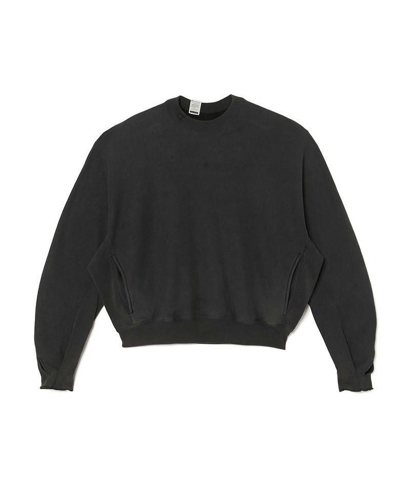 立体裁断により身体に沿う設計。前身頃からスリーブを通り、後身頃まで一枚の生地で製作。 内側に入り込むように丸みのあるフォルムのスリーブ。サイドにエクスパンションガゼット、シームポケット付き。裾のリブはテンションを強めに設定。袖口はロック始末でフィンガーホール付き。左袖とネックにChampionの Cロゴを配置。N.HOOLYWOODのタグにChampionのロゴが入ったNEW WEAVE専用タグを製作。